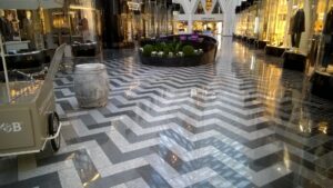 This was our most complex project to date. It required 4000m² of granite flooring and all in 13 completely different shades of the same colour, laid out in a particular way to make the pattern on the floor. In addition to this the floor was not flat and had an upwards slope which only made our lives harder. However, the biggest problem we had to overcome was actually supplying the granite flooring that the client requested. The only place we managed to find that did these 13 shades was a huge manufacturing company in China. This required Neil (one of our directors) and Phil (the manager of the project) to pack up and head off for China to confirm that these were the exact pieces we wanted.