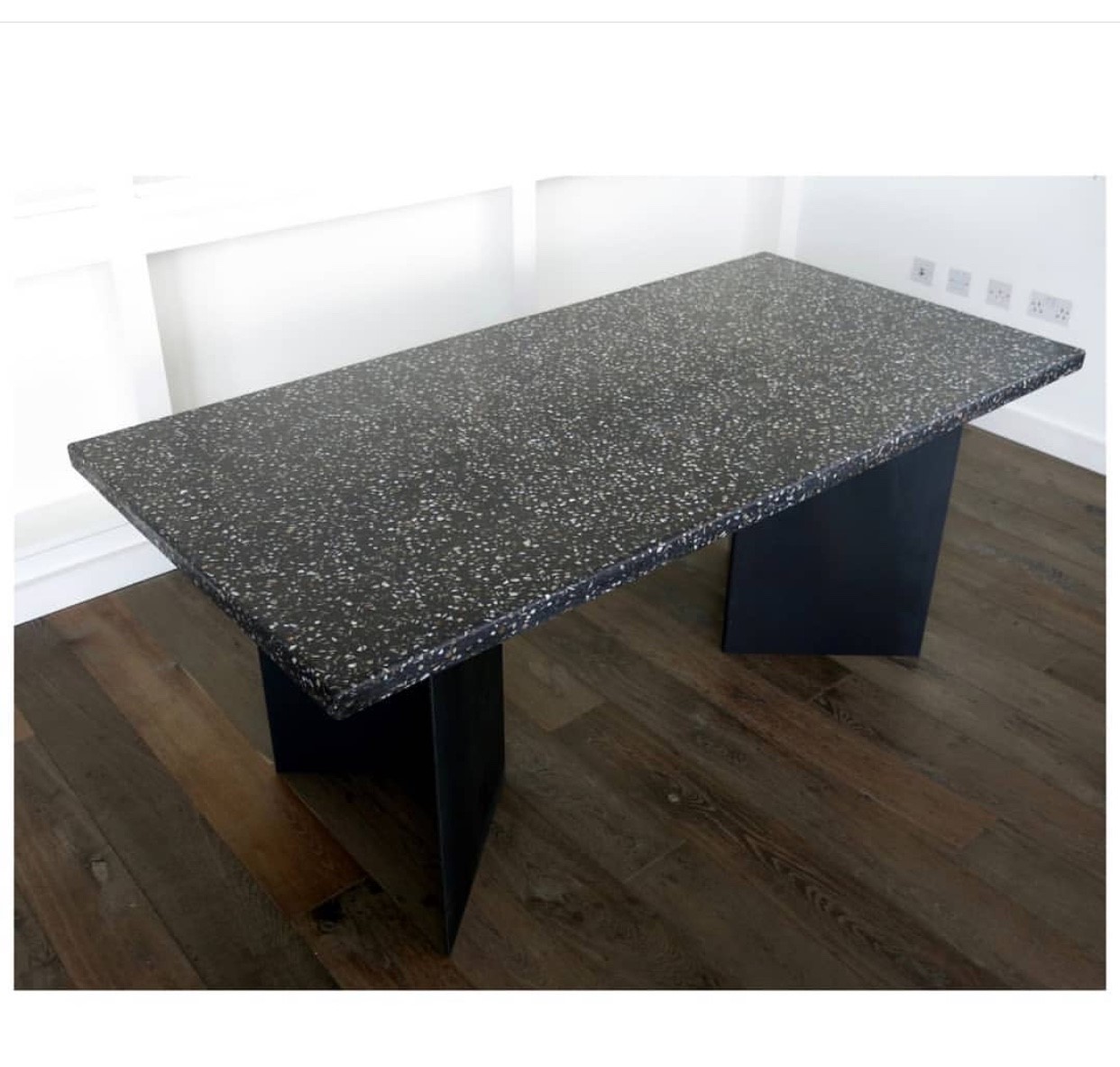 Terrazzo worktops are created using a mixture of stone, marble or glass chips set into cement or resin, producing a distinctive speckled appearance.